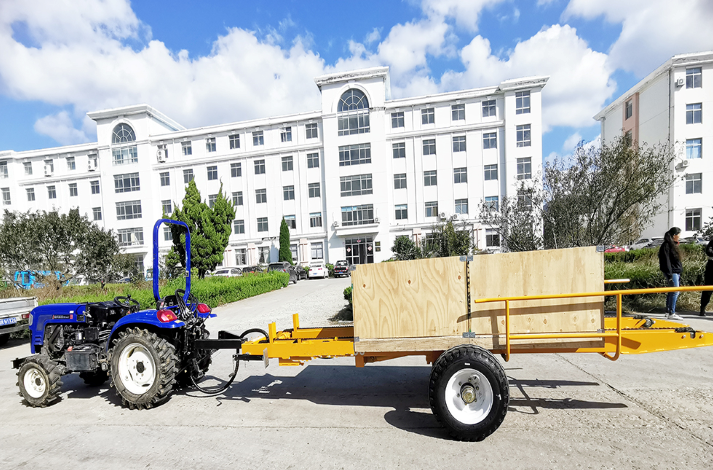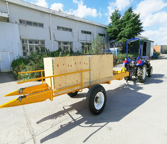 整機(jī)采用液壓馬達(dá)驅(qū)動(dòng)的鏈條絞鏈傳送裝置傳送果筐,采用液壓底盤(pán)升降的機(jī)構(gòu)可將車(chē)輛底盤(pán)調(diào)整到離地最小的距離,方便上下果筐。與拖拉機(jī)配合使用,可以安裝在拖拉機(jī)前方(帶有前懸掛的拖拉機(jī))也可安裝在拖拉機(jī)后側(cè)懸掛處;也可與其它帶有液壓動(dòng)力源的牽引車(chē)輛配套使用。